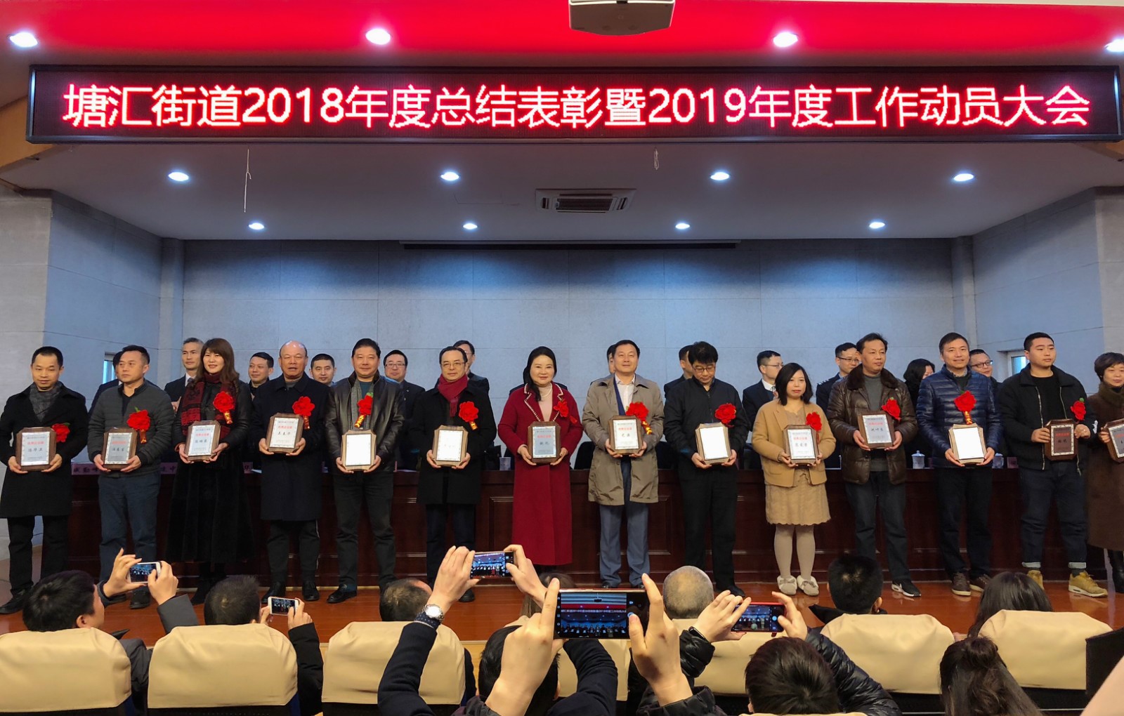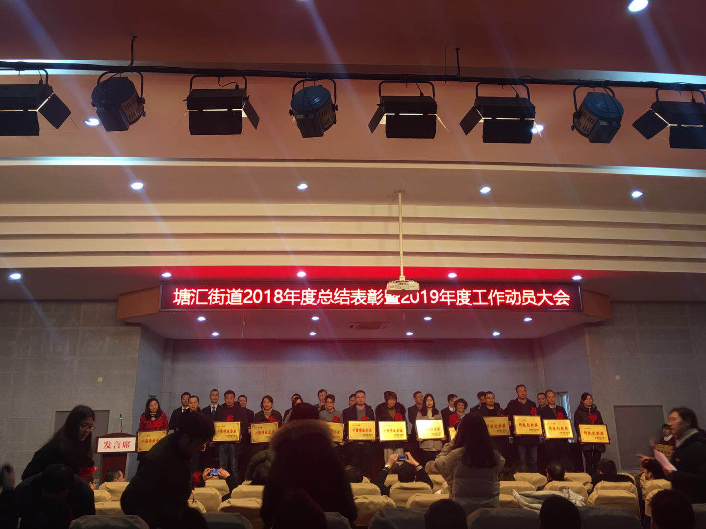 祝賀公司在塘匯街道2018年度總結表彰會上榮獲多項年度榮譽