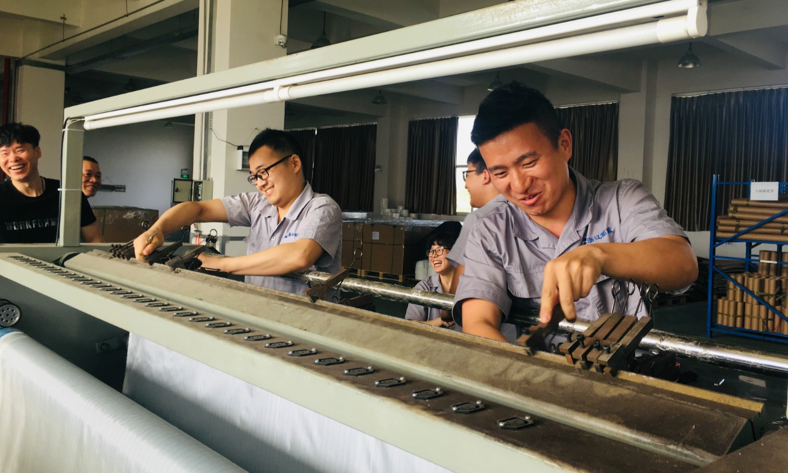 本次技能比武分為四個(gè)項(xiàng)目,包括脫模布車(chē)間員工的排刀速度競(jìng)賽項(xiàng)目,真空袋膜等車(chē)間員工的打包速度競(jìng)賽項(xiàng)目,倉(cāng)庫(kù)員工的打包項(xiàng)目,以及具有叉車(chē)證員工的叉車(chē)比拼項(xiàng)目。