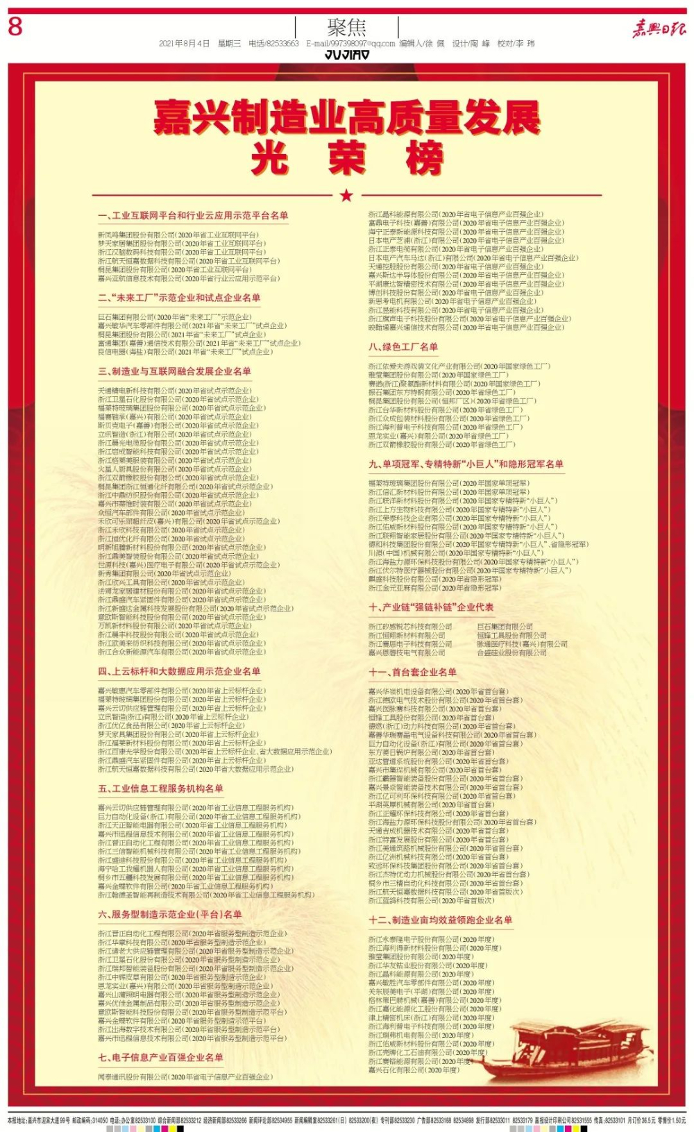 《嘉興日報》刊登了“嘉興制造業(yè)高質(zhì)量發(fā)展光榮榜”,浙江佑威新材料股份有限公司榮獲專精特新“小巨人”企業(yè)制造業(yè)畝均效益領(lǐng)跑企業(yè),讓我們一起點(diǎn)贊!